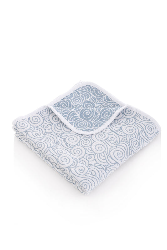 4 Kat Jakarlı Müslin Battaniye 110x110cm - Dalga Desen Mavi
