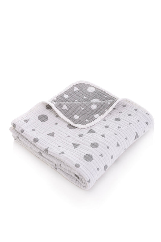 4 Kat Jakarlı Müslin Battaniye 110x110cm - Geometrik Desen Gri