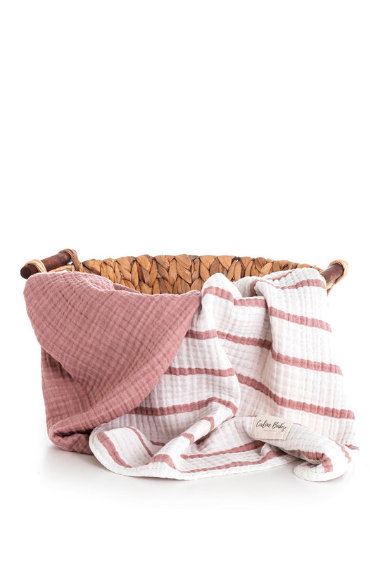 4 Kat Müslin Battaniye 120x120cm Gül Kurusu Çizgili