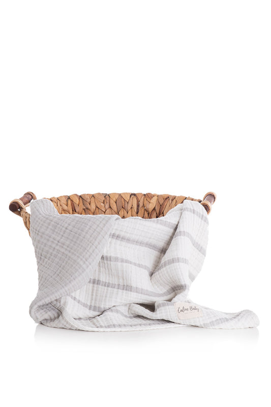 4 Kat Müslin Battaniye 120x120cm Gri Çizgili
