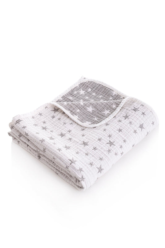 4 Kat Jakarlı Müslin Battaniye 110x110cm - Yıldız Desen Gri