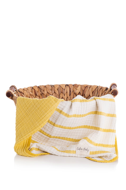 4 Kat Müslin Battaniye 120x120cm Hardal Çizgili