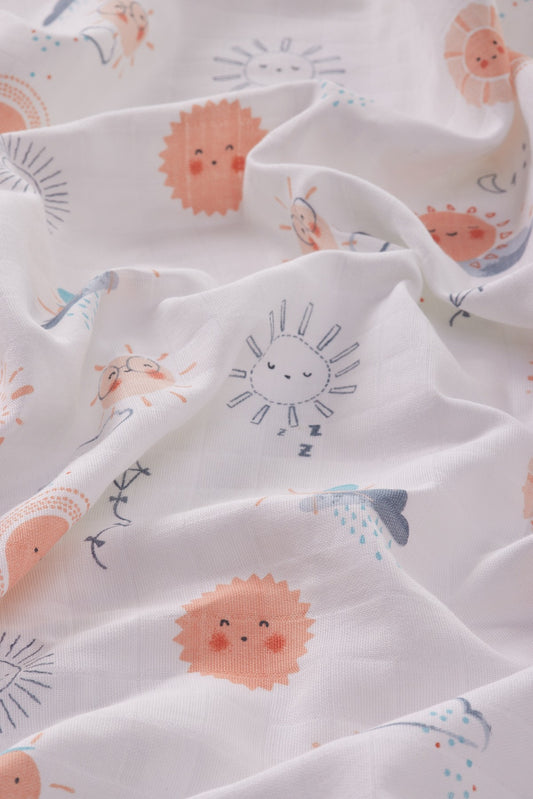 Müslin Bezi Örtü Güneş Desen - Pembe 120x120 cm + 4 Adet Ağız Mendili