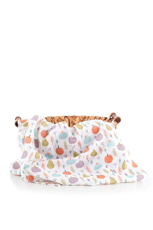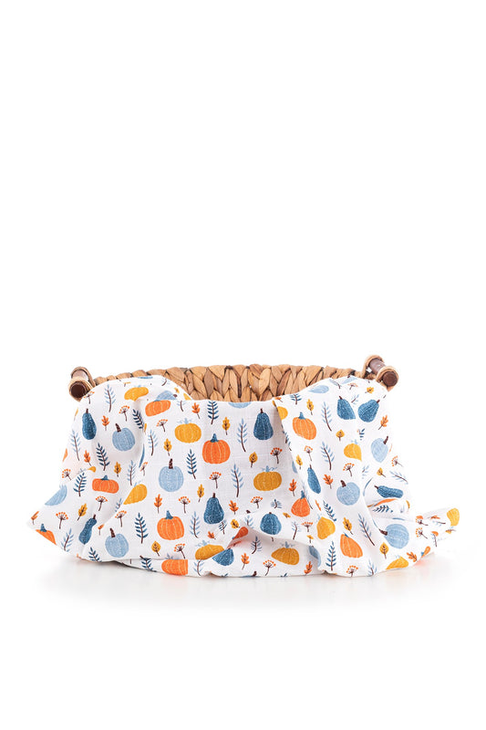 Müslin Bezi Bal Kabağı Desen Mavi 75x90 cm + 2 Adet Ağız Mendili