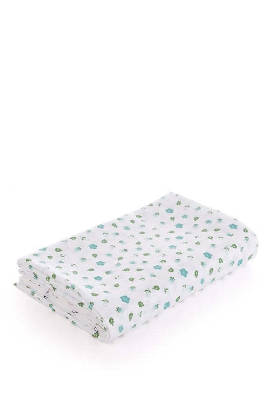 Müslin Bezi Örtü Menekşe Desen - Yeşil 120x120 cm + 4 Adet Ağız Mendili