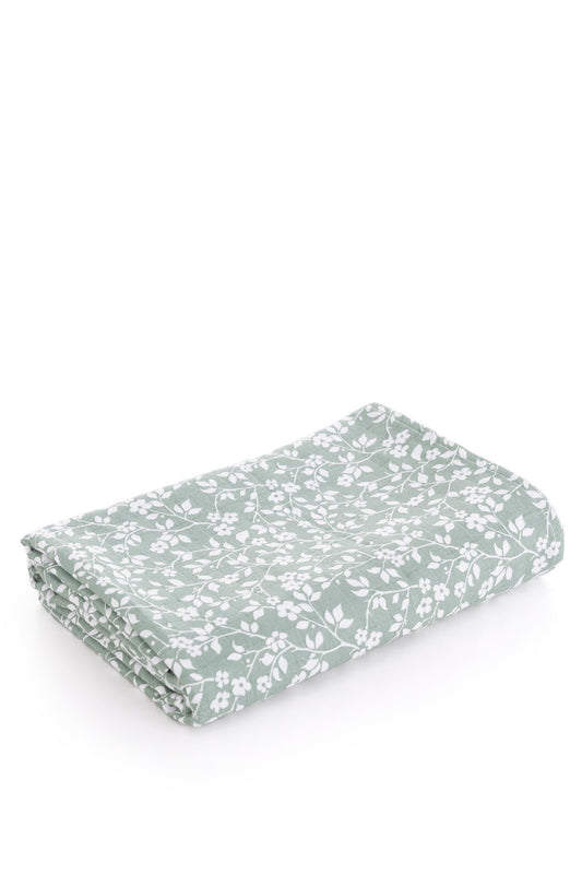 Müslin Bezi Örtü Gül Desen- Yeşil 120x120 Cm + 4 Adet Ağız Mendili
