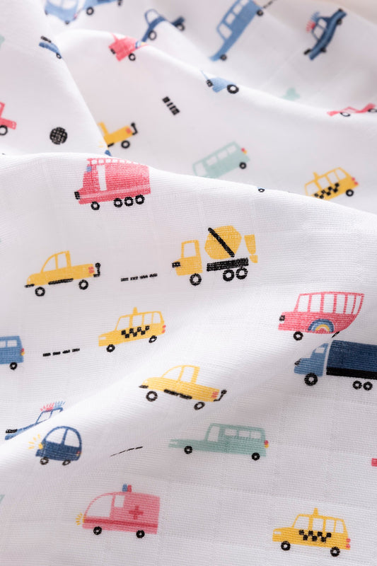 Müslin Bezi Araba Desen Gri 75x90 cm + 2 Adet Ağız Mendili