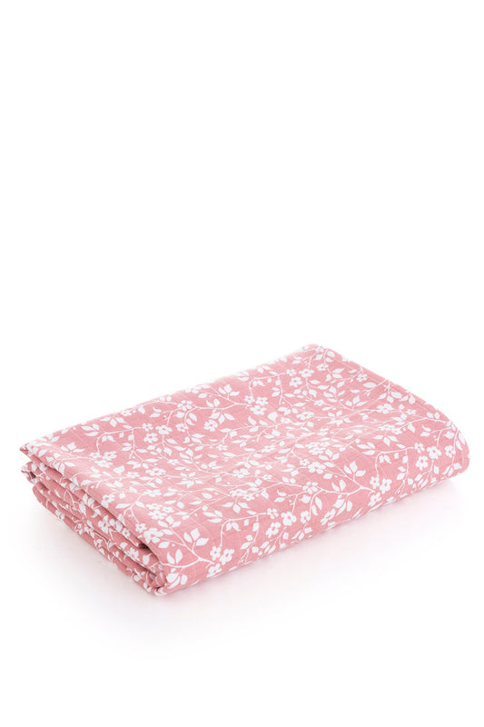 Müslin Bezi Örtü Menekşe Desen - Gül Kurusu 120x120 cm + 4 Adet Ağız Mendili