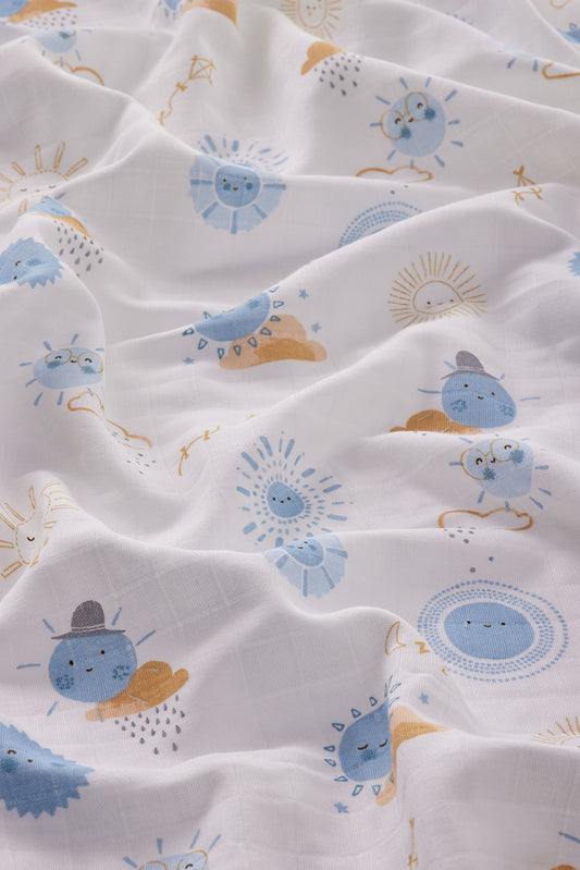 Müslin Bezi Örtü Güneş Desen - Mavi 120x120 cm + 4 Adet Ağız Mendili