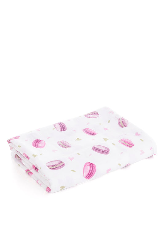 Müslin Bezi Örtü Makaron Desen - Pembe 120x120 cm + 4 Adet Ağız Mendili