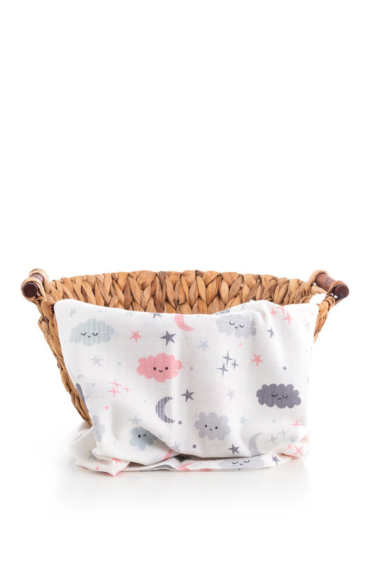 Müslin Bezi Örtü Bulut Desen Pembe 120x120 cm + 4 Adet Ağız Mendili