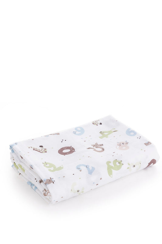 Müslin Bezi Örtü Sayı Desen - Yeşil 120x120 cm + 4 Adet Ağız Mendili