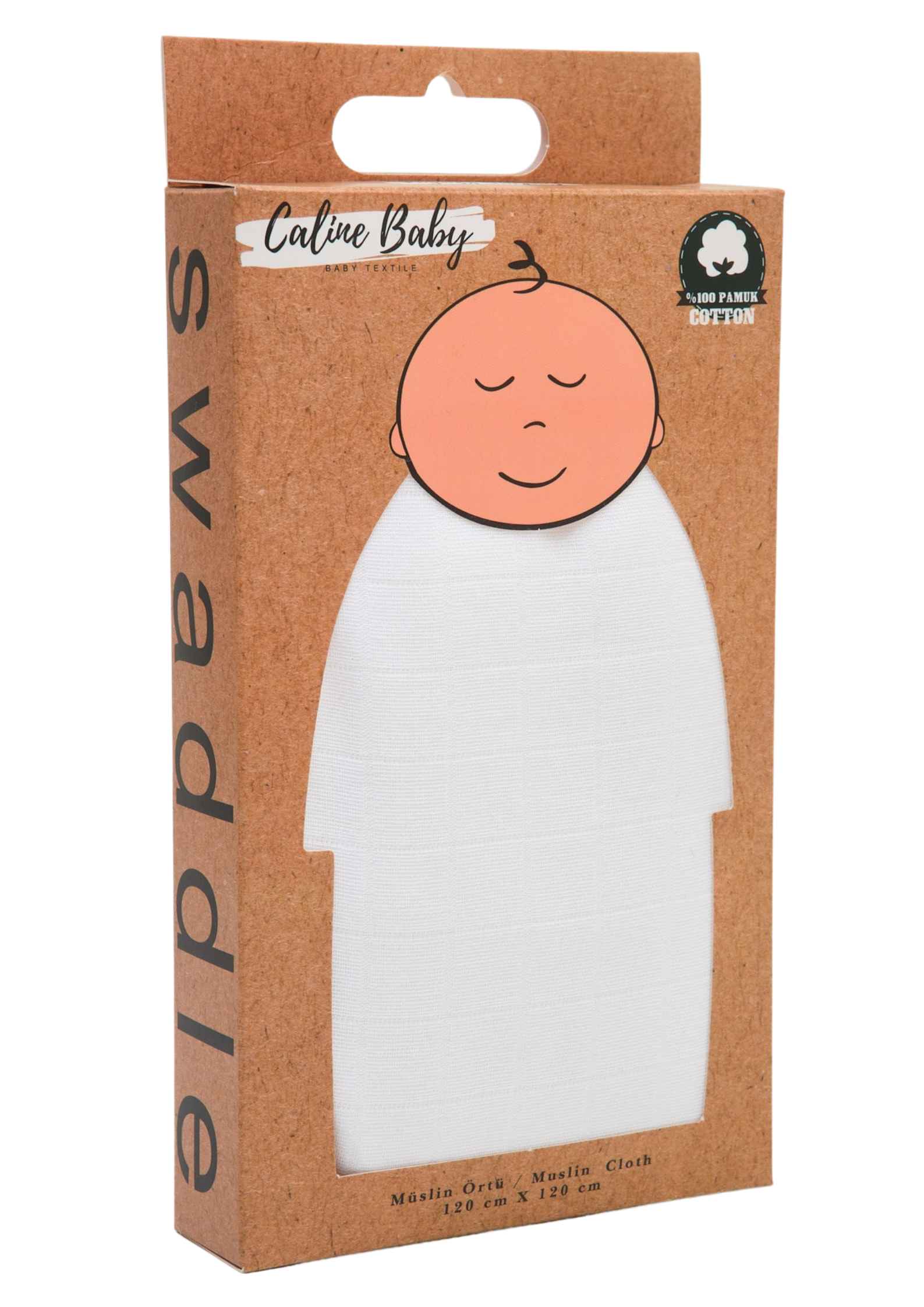 Piyasadaki müslinler 90x90 cm - bebeğin 2 yaşına gelince küçük kalıyor, yenisini almak zorundasın. Caline Baby 120x120 cm, 110x110 cm - 0'dan 5 yaşına kadar rahatça kullanırsın.