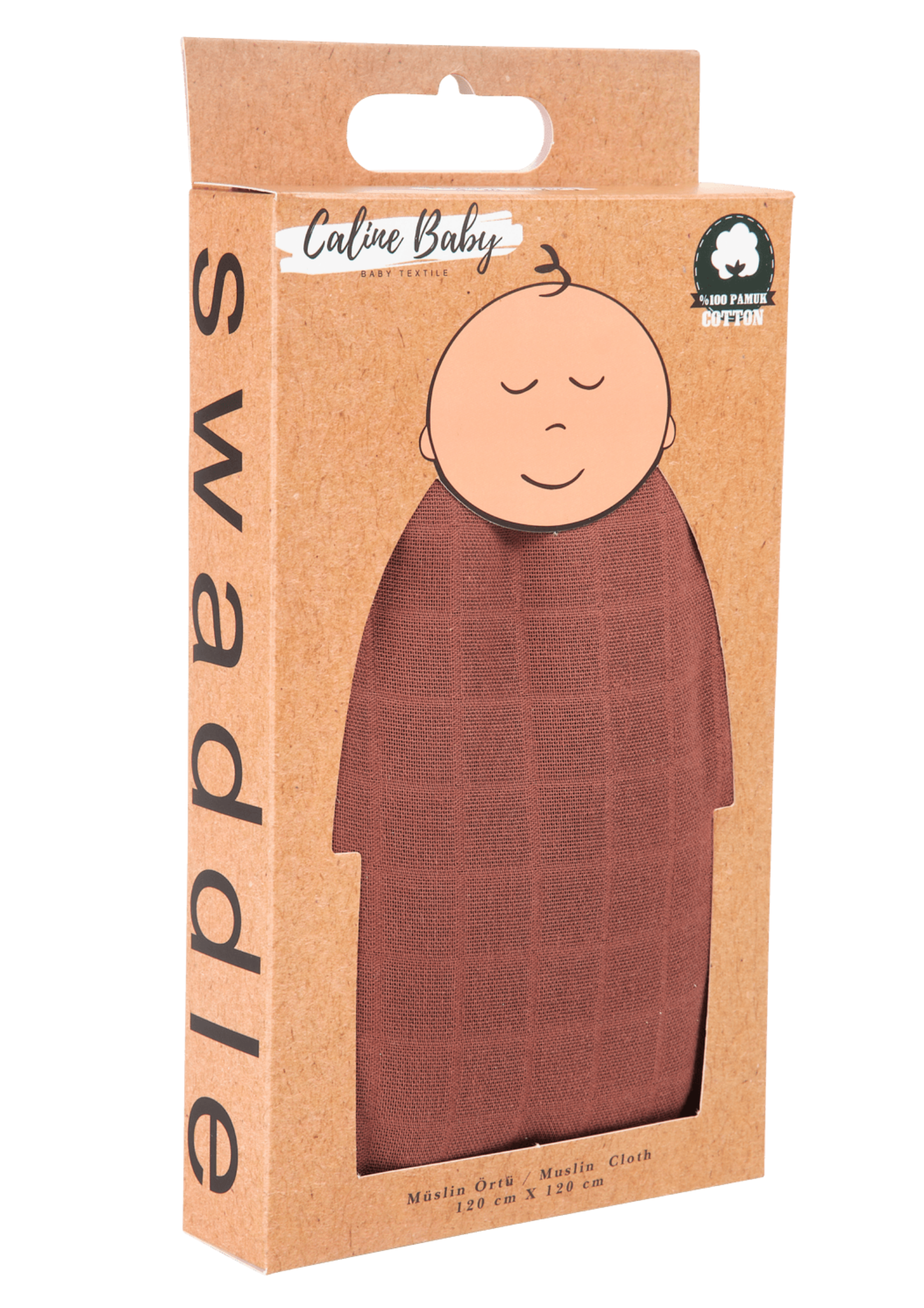 Müslin Bezi Örtü Düz Renk - Kahve 120x120 cm + 4 Adet Ağız Mendili