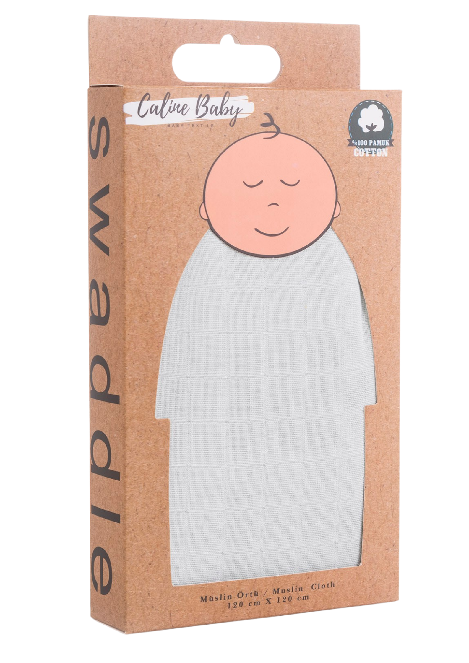 Piyasadaki müslinler 90x90 cm - bebeğin 2 yaşına gelince küçük kalıyor, yenisini almak zorundasın. Caline Baby 120x120 cm, 110x110 cm - 0'dan 5 yaşına kadar rahatça kullanırsın.