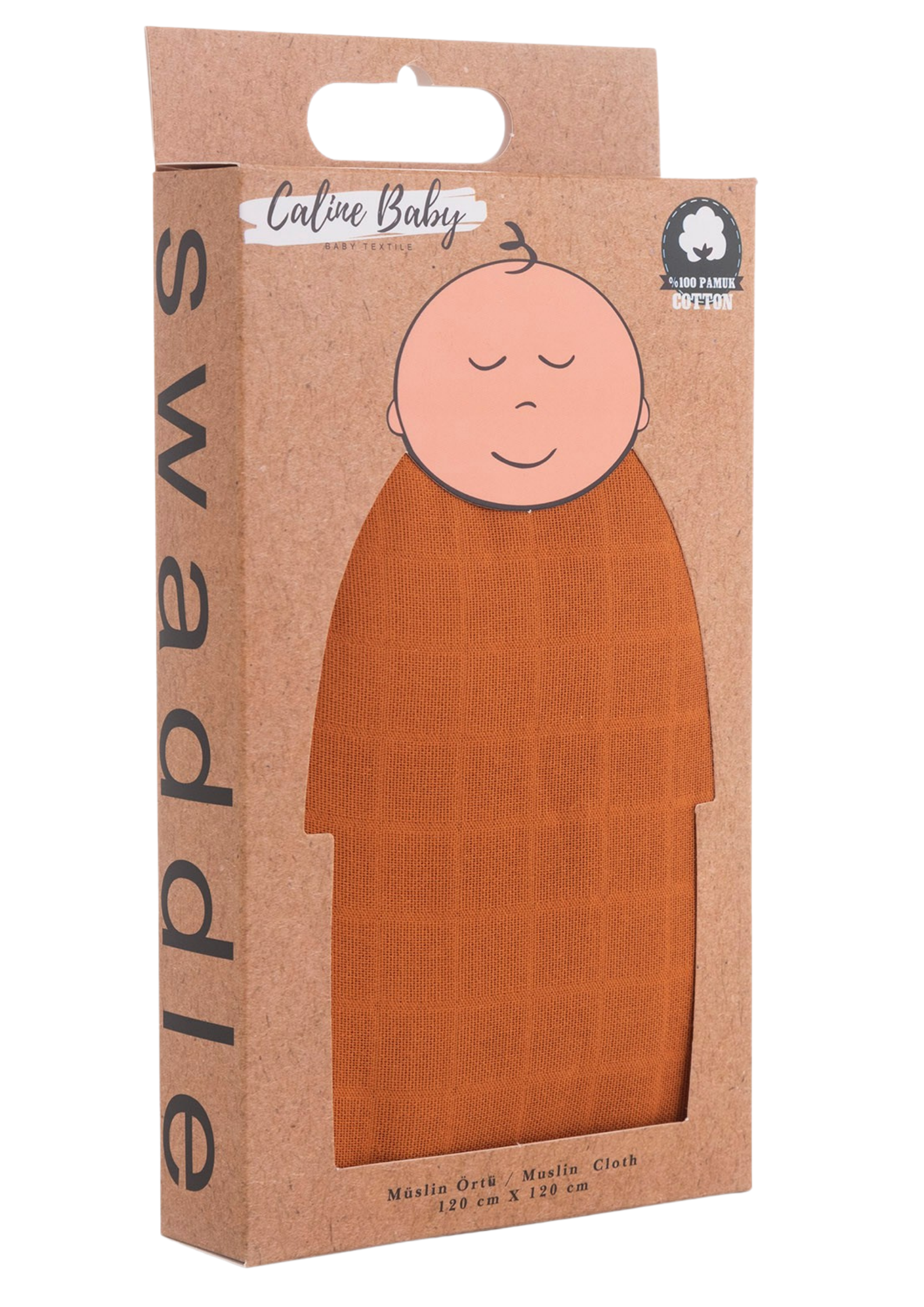 Müslin Bezi Örtü Düz Renk - Tarçın 120x120 cm + 4 Adet Ağız Mendili