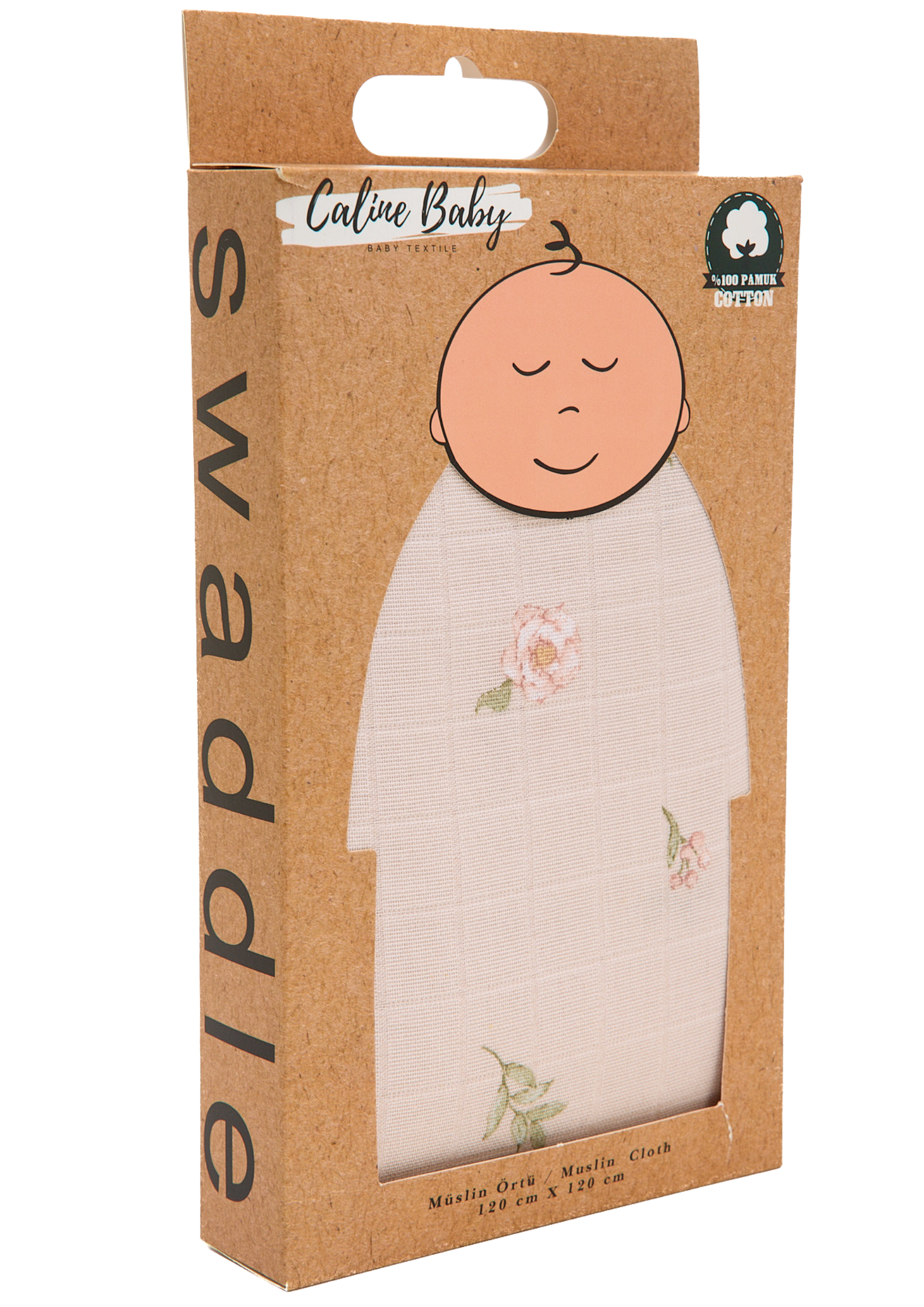 Piyasadaki müslinler 90x90 cm - bebeğin 2 yaşına gelince küçük kalıyor, yenisini almak zorundasın. Caline Baby 120x120 cm, 110x110 cm - 0'dan 5 yaşına kadar rahatça kullanırsın.